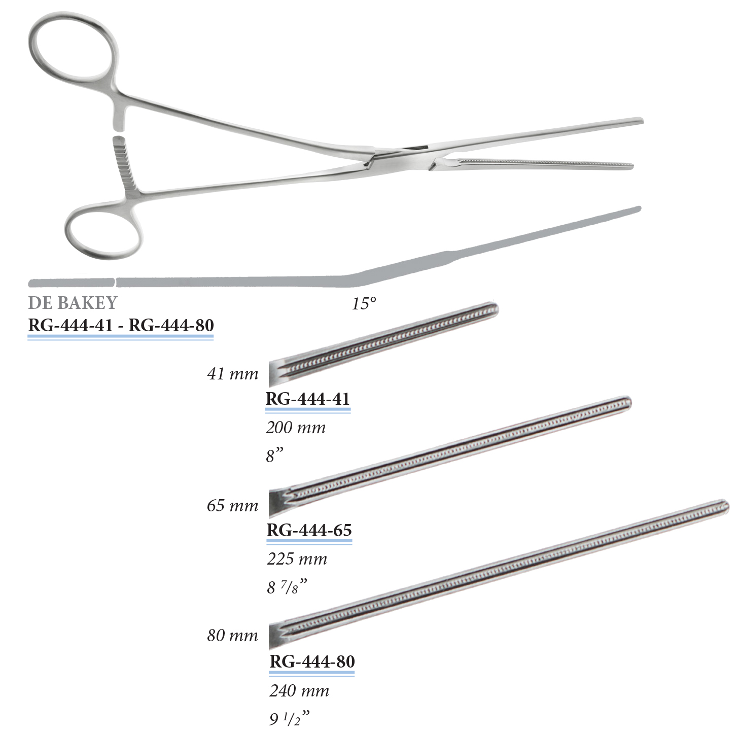 RG-443-41 De Bakey's non-traumatic coarctation clamps, straight, 41 mm, 205 mm