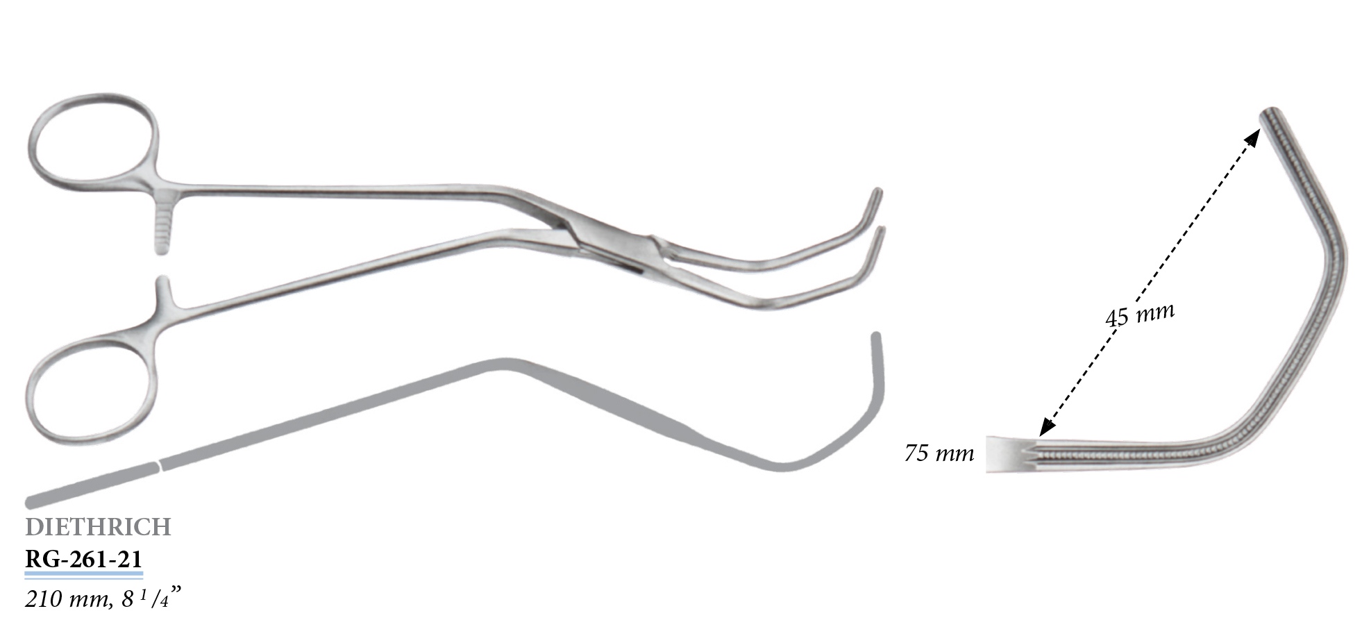 RG-261-21 Dietrich's non-traumatic haemostatic forceps, curved, 45 mm, 210 mm