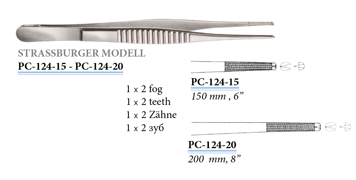 PC-124-15 Strassburger's tissue forceps, 150 mm 1x2 teeth