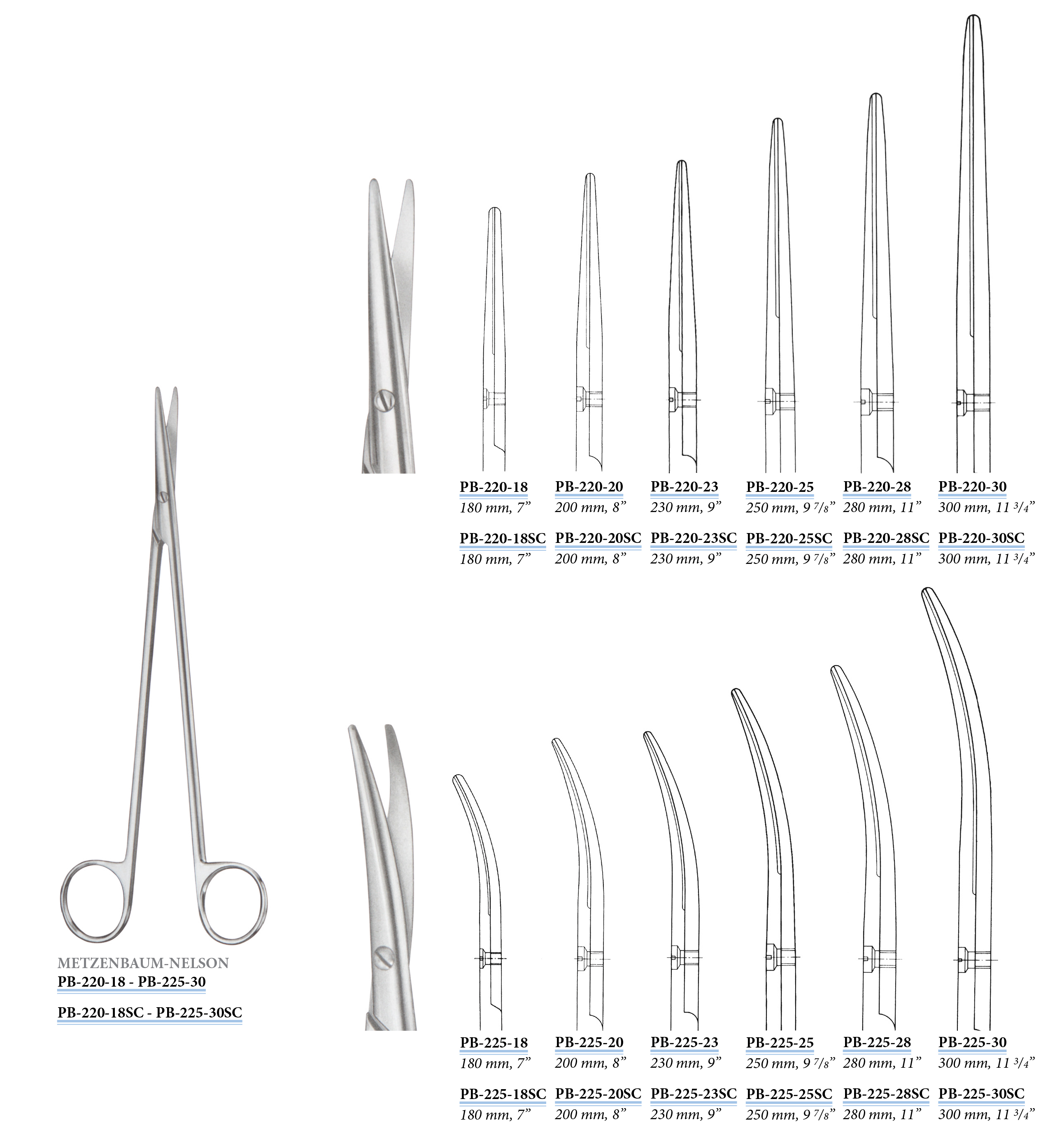 PB-220-20 Metzenbaum-Nelson scissors, blunt-blunt straight 200 mm