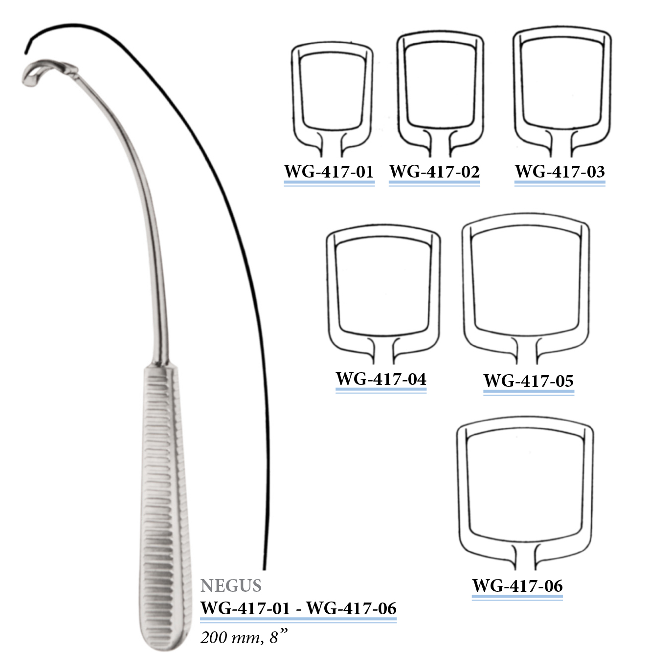 WG-417-04 Negus's adenoid curette, reserve curve, 200 mm